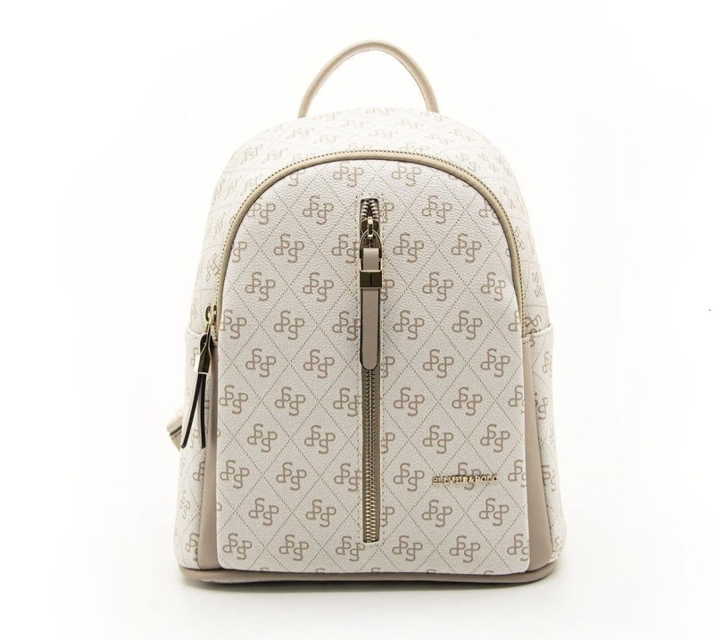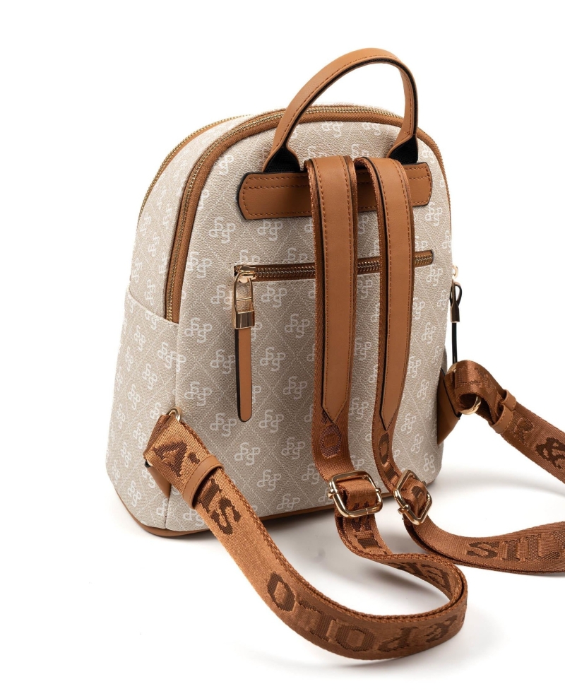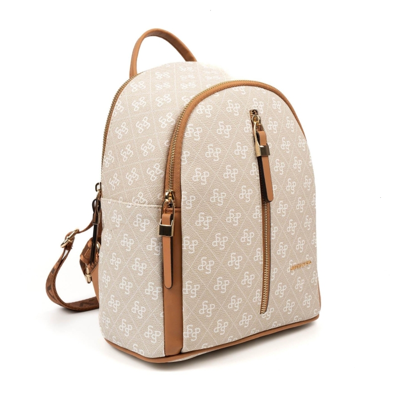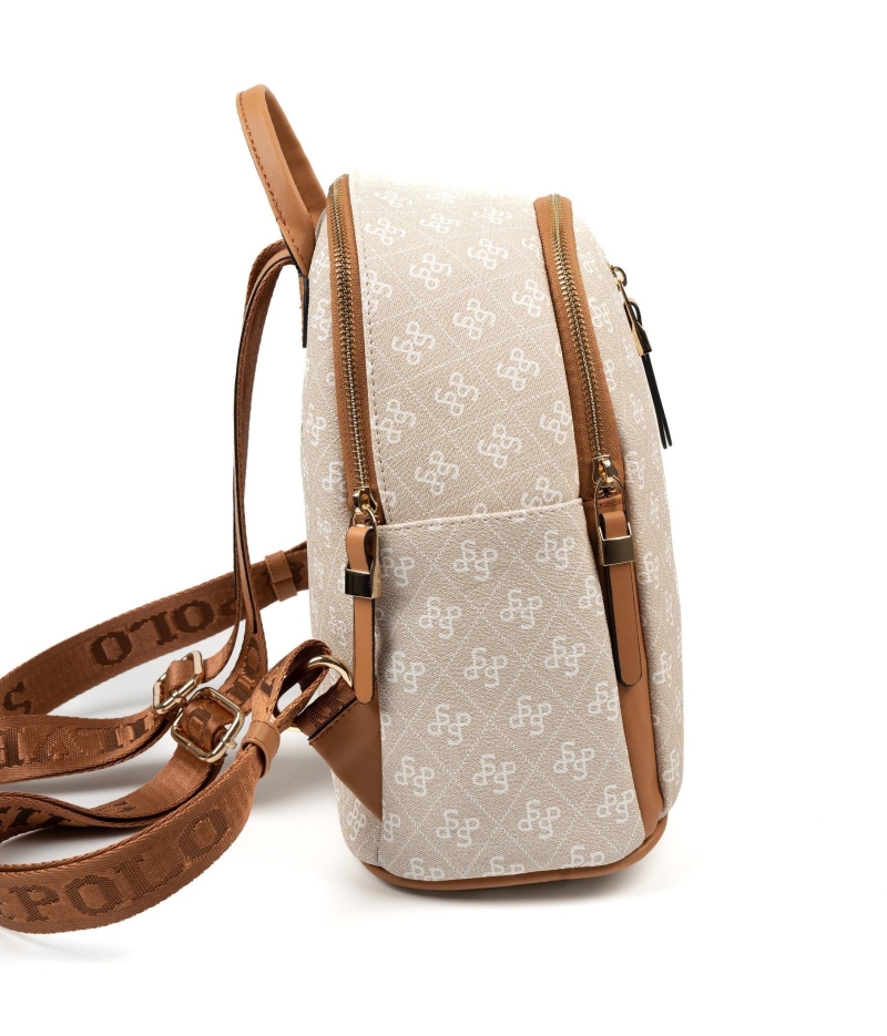 Дамска раница в бежово и кафяво 901 M178 SP Print Silver&Polo