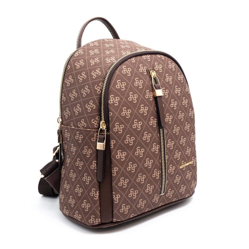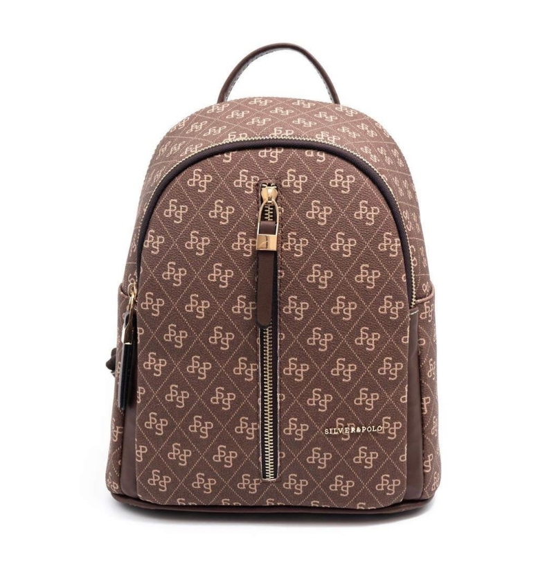 Дамска раница кафява 901 M178 SP Print Silver&Polo