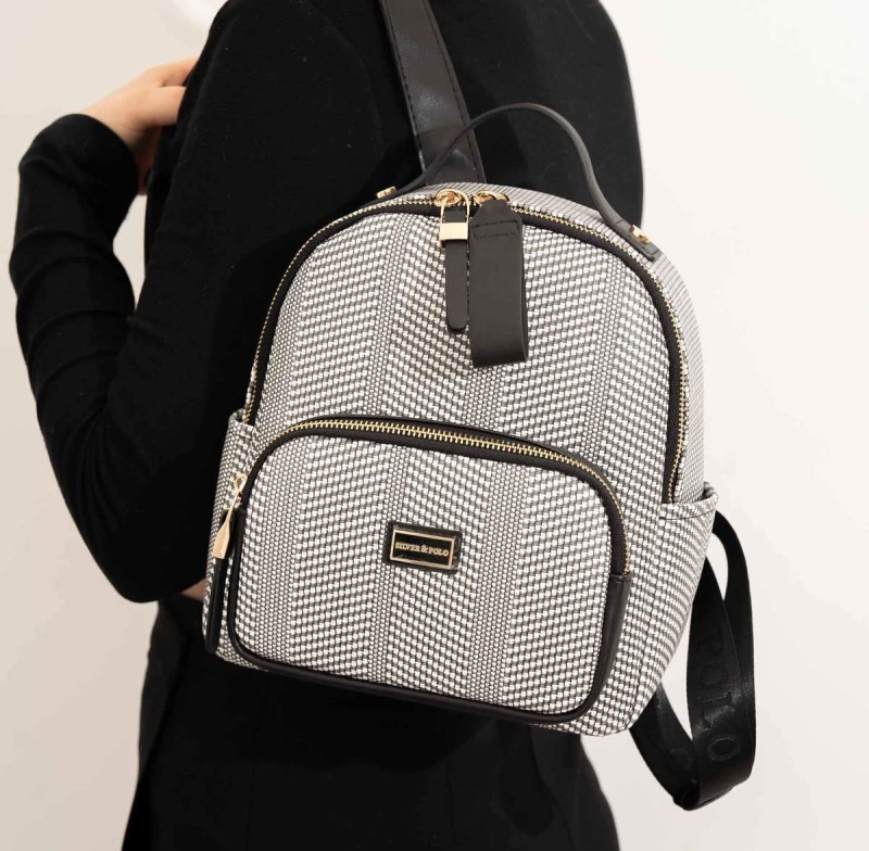 Дамска раница в черно и бяло 1130 M132 Silver&Polo