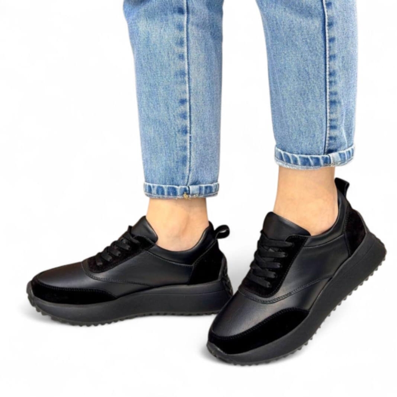 Дамски спортни обувки от естествена кожа черни 902N
