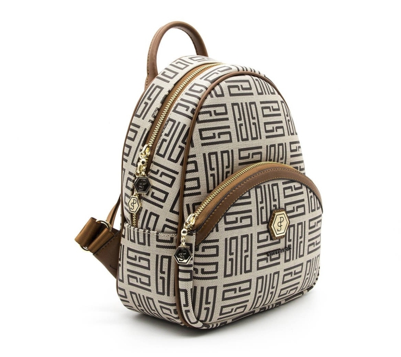 Дамска раница в бежово и кафяво 945 M11 PP Labirent Silver&Polo